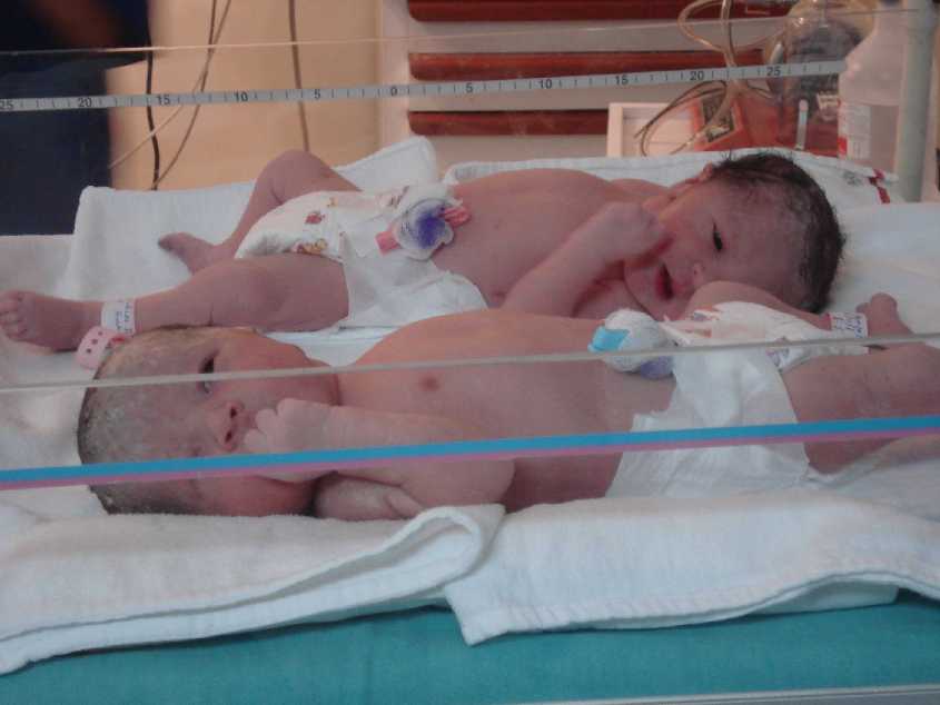 El matrimonio Urtecho Gonzáles recibió a sus mellizas este último 14 de Abril, casi como un cuento de corte rosa. Pues no sería un hecho de asombro si el Parlamentario Liberteño Michael Urtecho, no tuviese distrofia muscular. Ya que para muchos y a él mismo ser padre parecía difícil, pero gracias a los avances de la ciencia médica es hoy, un feliz papá. Pero sobre todo se debe al poder del amor y la entrega de la pareja, en especial de Claudia, su esposa, quien renunció a todo la rutina activa que tenía, para convertirse en madre; y ahora su sacrificio está grandemente recompensado con la presencia de Ana Claudia y Ana Rebeca, sus bellas hijas. Ana Claudia que es la mayor pesa 2.630 gr. y mide 47 cm. , mientras que Ana Rebeca pesa 3.005 Kg. y mide 49 c.m. |