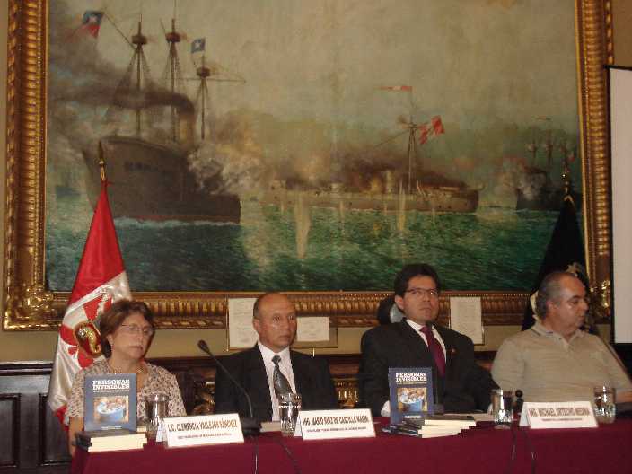 El Presidente de la Comisión de Discapacidad del Congreso de la República, Ing. MSc. Michael Urtecho Medina, presentó el Libro "Personas Invisibles: Hacia una Cultura de Inclusión", el día 28 de febrero del 2008, donde se contó con la presencia de distiguidas autoridades como la Dra. Clemencia Vallejos del Ministerio de Educación, Sr. José Antonio Ísola Regidor de la Municipalidad de San Isidro. |