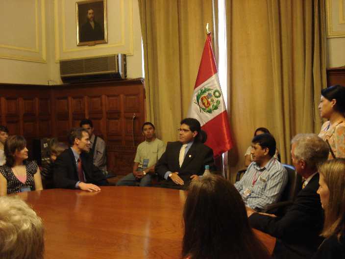 El Congresista Michael Urtecho Medina en su calidad de Presidente de la Liga Parlamentaria de Amistad Perú – Estados Unidos acompañado del vicepresidente del Congreso, Dr. Álvaro Gutiérrez Cueva, entre otros legisladores integrantes de esta Liga de amistad, recibieron a la delegación de Congresistas Estadounidenses encabezado por Eliot Engel, Presidente del Sub comité en el Hemisferio Occidental, y su embajador en el Perú Michael McKinley quienes acudieron al Congreso de la República con la finalidad de conversar sobre temas relacionados a salud, educación y energía y fortalecer las relaciones entre ambos países. 07/11/08. |