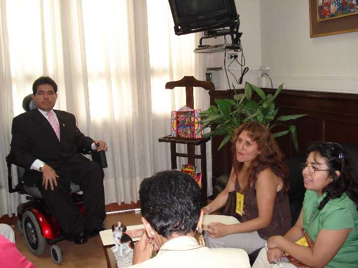 El Congresista Michael Urtecho, se reunió en su despacho con la Dra. Malena Pineda Coordinadora del Equipo de Defensa y Promoción de los derechos de las Personas con Discapacidad – EDEPRODIS de la Defensoría del Pueblo, para intercambiara opiniones a cerca los avances relacionados al tema de la discapacidad en el Perú. 26/08/08.