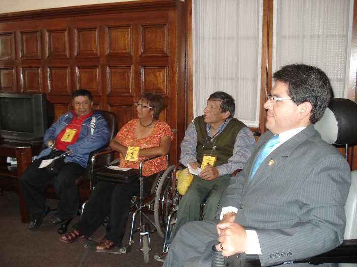 Representantes de asociaciones y federaciones del Callao se reunieron con el congresista Michael Urtecho, presidente de la Comisión Especial de Discapacidad del Congreso, con la finalidad de buscar alternativas de solución a la problemática de las personas con discapacidad de la región Callao. 19/11/08. |