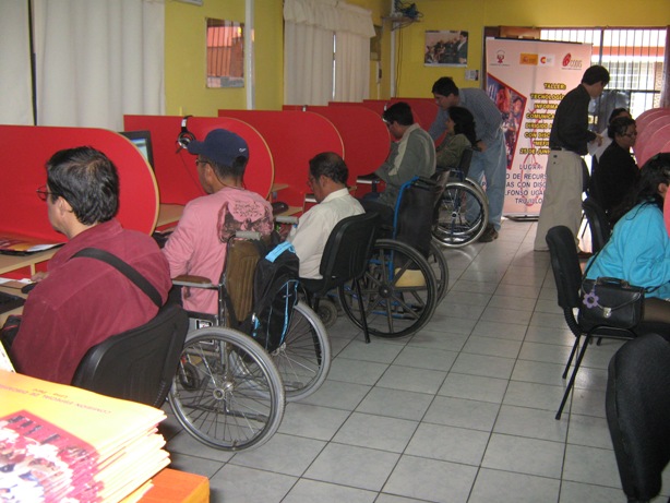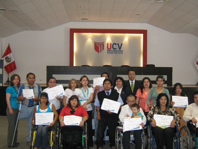 La primera promoción de 11 personas con discapacidad de Locomoción y discapacidad Intelectual Leve del Departamento de La Libertad, recibieron su certificado por haber culminado el Curso de Ofimática en el Centro de Recursos para personas con discapacidad -MEFIBOSET, en convenio con la Universidad César Vallejo en la ciudad de Trujillo. 26.12.09. |