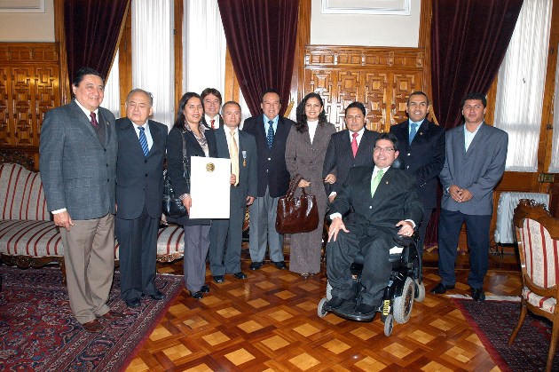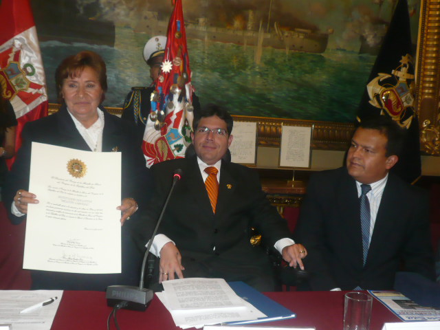 El Segundo Vicepresidente del Congreso Ing. Michael Urtecho Medina, estuvo presente en la Ceremonia de Condecoración en el Grado de Oficial del Congreso de la República al Presidente de la Asociación Solaris Perú. 13.08.09. |
