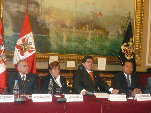 Participaron en la Ceremonia de Inauguración de Nuevos equipos para la Sala de Cronistas Parlamentarios del Congreso de la República, los Vicepresidentes Ing. Michael Urtecho y Antonio León Zapata, los Congresistas Alda Lazo Ríos, Cenaida Uribe, Víctor Andrés García Belaúnde, entre otros. 28.08.09. |