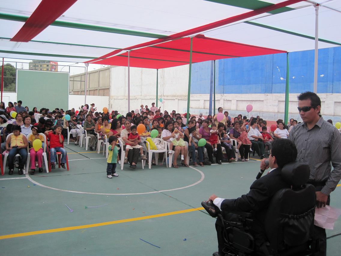 Multitud de niños con discapacidad de Centros Educativos, OMAPED´s, Asociaciones de personas con discapacidad y niños de extrema pobreza, compartieron una tarde de alegría y la dulzura en la Chocolatada “GOTITAS DE AMOR”, organizada por el Segundo Vicepresidente del Congreso, Ing. Michael Urtecho Medina. 17.12.09. |