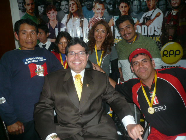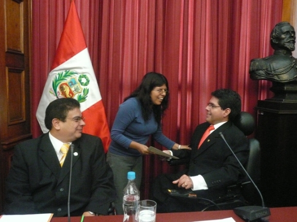 El Ing. Michael Urtecho Medina, Segundo Vicepresidente del Congreso, Sra. Luz Elena Calle, especialista en temas de salud mental, y el Dr. Jorge Vásquez, representante del CONADIS, estuvieron presentes durante el “Seminario Taller sobre Políticas Públicas y Experiencias de Inclusión Laboral de personas con discapacidad en el Perú”, realizado el 26 de octubre del 2009 en el Hotel Colón – Miraflores, organizado por la Segunda Vicepresidencia del Congreso. |