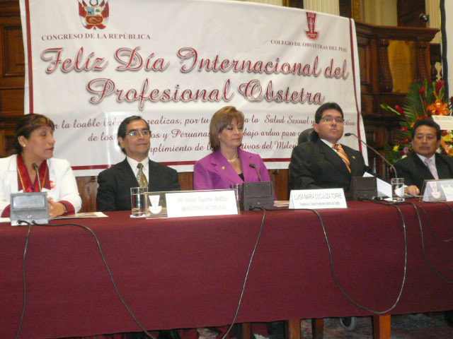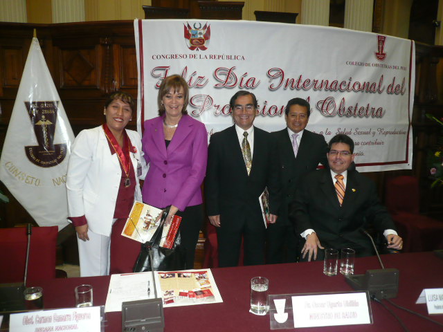 Ing. Michael Urtecho Medina Segundo Vicepresidente del Congreso, Dr. Oscar Ugarte Ubilluz, Ministro de Salud, los Congresistas Sra. Luisa María Cuculiza y Dr. Daniel Robles López, entre otros, participaron en la ceremonia por el Día Internacional del Obstetra. 31.08.09. |