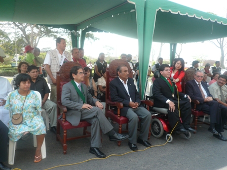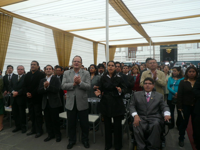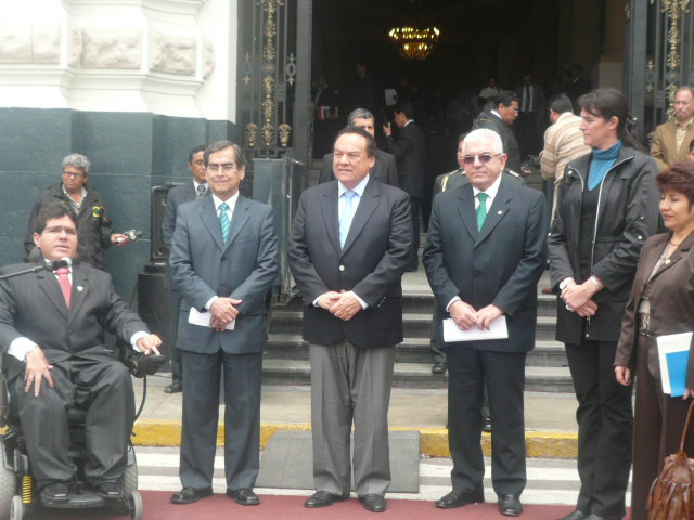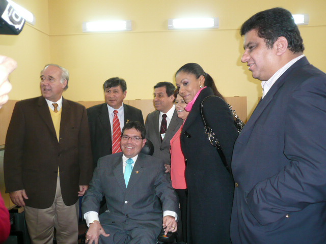 Junto al Presidente del Congreso Dr. Luis Alva Castro, Ministro de Salud Dr. Oscar Ugarte, Ministro del Ambiente Ing. Antonio Brack, Congresistas de diversas bancadas políticas, el Ing. Michael Urtecho Medina, Segundo Vicepresidente del Congreso, en una ceremonia especial hizo la entrega oficial de un vehículo accesible para el Congreso de la República, el mismo que será de uso exclusivo para las personas con discapacidad que visiten el parlamento. 27.10.09. |