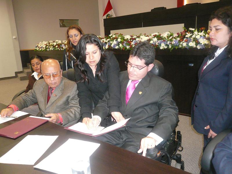 La Comisión Especial de Discapacidad del Congreso y la Universidad César Vallejo de Trujillo firman Convenio Marco de Cooperación Interinstitucional para mejorar los conocimientos de las personas con discapacidad, especialmente en la Región La Libertad. 30.09.09. |