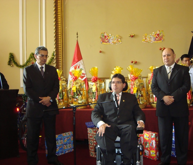 Palabras de afecto, motivación y agradecimiento, dio el Segundo Vicepresidente del Congreso Ing. Michael Urtecho Medina a nombre de la Mesa Directiva del Congreso a todos los Trabajadores con motivo de la Navidad, durante la ceremonia ofrecida en la Sala Miguel Grau del Congreso, donde recalcó que el motivo de la navidad es compartir el amor que nos dejó Jesús. 18.12.09. |