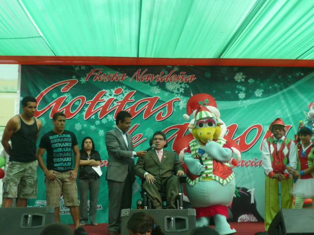 Más de 1500 niños con discapacidad de Lima y Callao, acudieron al Congreso de la República por invitación de Segundo Vicepresidente del Congreso, Ing. Michael Urtecho Medina para participar en la Chocolatada Navideña “GOTITAS DE AMOR”, que ofreció en la Plaza José Faustino Sánchez Carrión, a la que también se sumaron los futbolistas Piero Alva, Duber Zapata, Jorge Araujo entre otros, con el objetivo de compartir la alegría de la navidad. 17 de diciembre del 2009. |