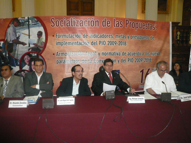Se realizó la Mesa de Trabajo sobre Armonización legal y normativa de acuerdo a los nuevos parámetros de la Convención y Adecuación normativa del Plan de Igualdad de Oportunidades para personas con discapacidad, el día 30 de octubre del 2009, organizado por la Segunda Vicepresidencia del Congreso que preside el Ing. Michael Urtecho Medina. 30.10.09. |