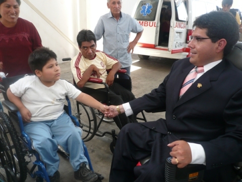 El Congresista Michael Urtecho Medina, Segundo Vicepresidente del Congreso, realizó la donación de sillas de ruedas, muletas, entre otros, así como material para personas con discapacidad visual en la Región La Libertad. 29.09.09. |