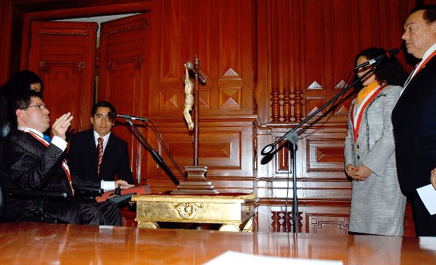 El congresista Luis Alva Castro asume la conducción del Congreso de la República, tras juramentar como presidente de este Poder del Estado. Lo acompañarán en la Mesa Directiva los legisladores Cecilia Chacón de Vettori (GPF), como primera vicepresidenta; Michael Urtecho Medina (AN), segundo vicepresidente; y Antonio León Zapata (BP), tercer vicepresidente. 26/07/09. |