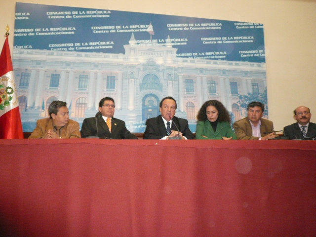 En la Sala Gustavo Mohme del Palacio Legislativo se realizó la Conferencia de Prensa de los integrantes a la Mesa Directiva por el Partido Oficialista para la Legislatura Ordinaria 2009-2010, donde el Congresista Michael Urtecho postula como Segundo Vicepresidente. 25.07.09. |