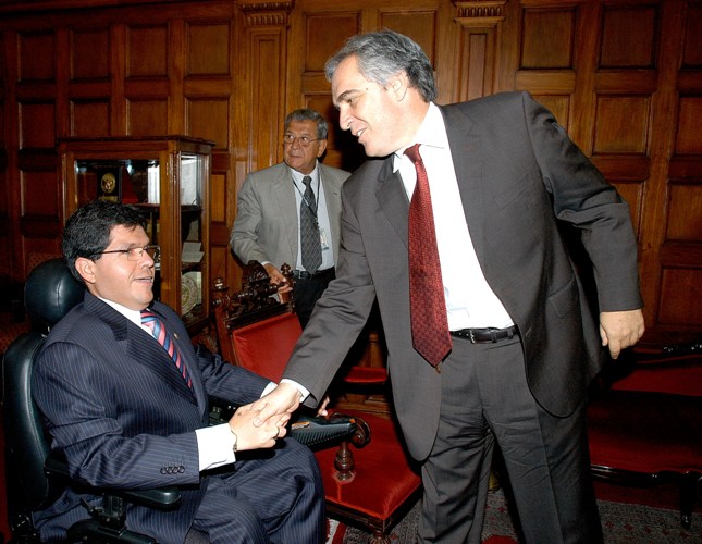 Con la finalidad de la dar a conocer la existencia en Estados Unidos de la Fundación Interamericana – IAF, institución que desde hace varios años viene apoyando proyectos de discapacidad, tanto en el Perú como en el extranjero, el Ing. Michael Urtecho Medina, Segundo Vicepresidente del Congreso, realizó la presentación de dicha Fundación en la Sala Miguel Grau del Palacio Legislativo donde el Representante Dr. Eduardo Rodríguez Frías, dio a conocer la Forma de solicitar donaciones para proyectos de discapacidad. 25.11.09. |