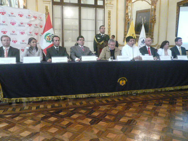 El Segundo Vicepresidente del Congreso Ing. Michael Urtecho Medina, junto al Alcalde de la Municipalidad de Lima Sr. Luis Castañeda Lossio, Hermano Isidro Vásquez Director de la Clínica San Juan de Dios, entre otras autoridades, así como, destacados representantes del mundo artístico acudieron a la Conferencia de Lanzamiento de la Teletón 2009, la misma que se realizará el 04 y 05 de diciembre del presente año. 20.11.09. |