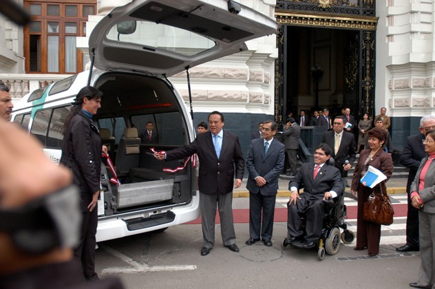 El Congreso de la República ya cuenta con vehículo accesible. La entrega oficial se realizó el 27 de octubre del presente año en el frontis del Palacio Legislativo, con presencia del Presidente del Congreso Dr. Luis Alva Castro. |