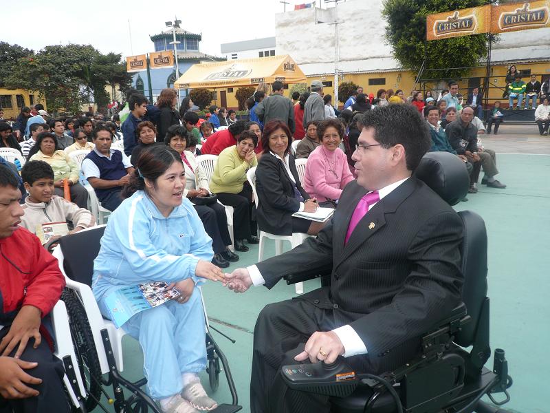 400 personas con discapacidad de la Región La Libertad fueron beneficiadas con los programas sociales “Mi Silla” y “Manos que ven” que el Congreso de la República viene impulsando a través de la Comisión Especial de Discapacidad y la Segunda Vicepresidencia, la cual preside el Congresista Michael Urtecho. 29.09.09. |