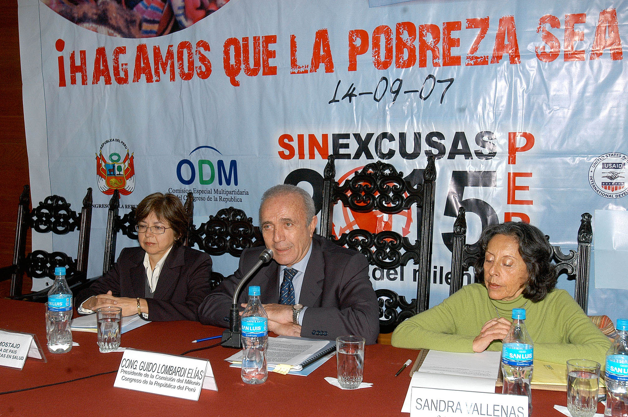 los congresistas Aldo Estrada Choque y Güido lombardi Elías encabezaron el lanzamiento de la campaña Sin excusas, Perú-2015, la cual buscará promover el cumplimiento de los objetivos de milenio en el plazo planteado para dicho año. Publicado el día 14/09/2007 |