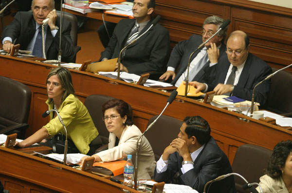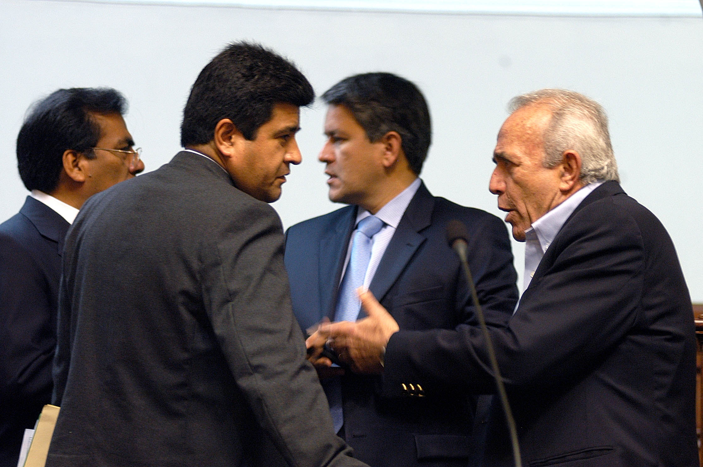 los parlamentarios Javier Velásquez, Martín Perez, Rafael Yamashiro y Guido lombardi punto de vista en torno a uno de los proyecto durante la sesión matinal del Pleno del Congreso. Publicado el día 15/11/2007 |