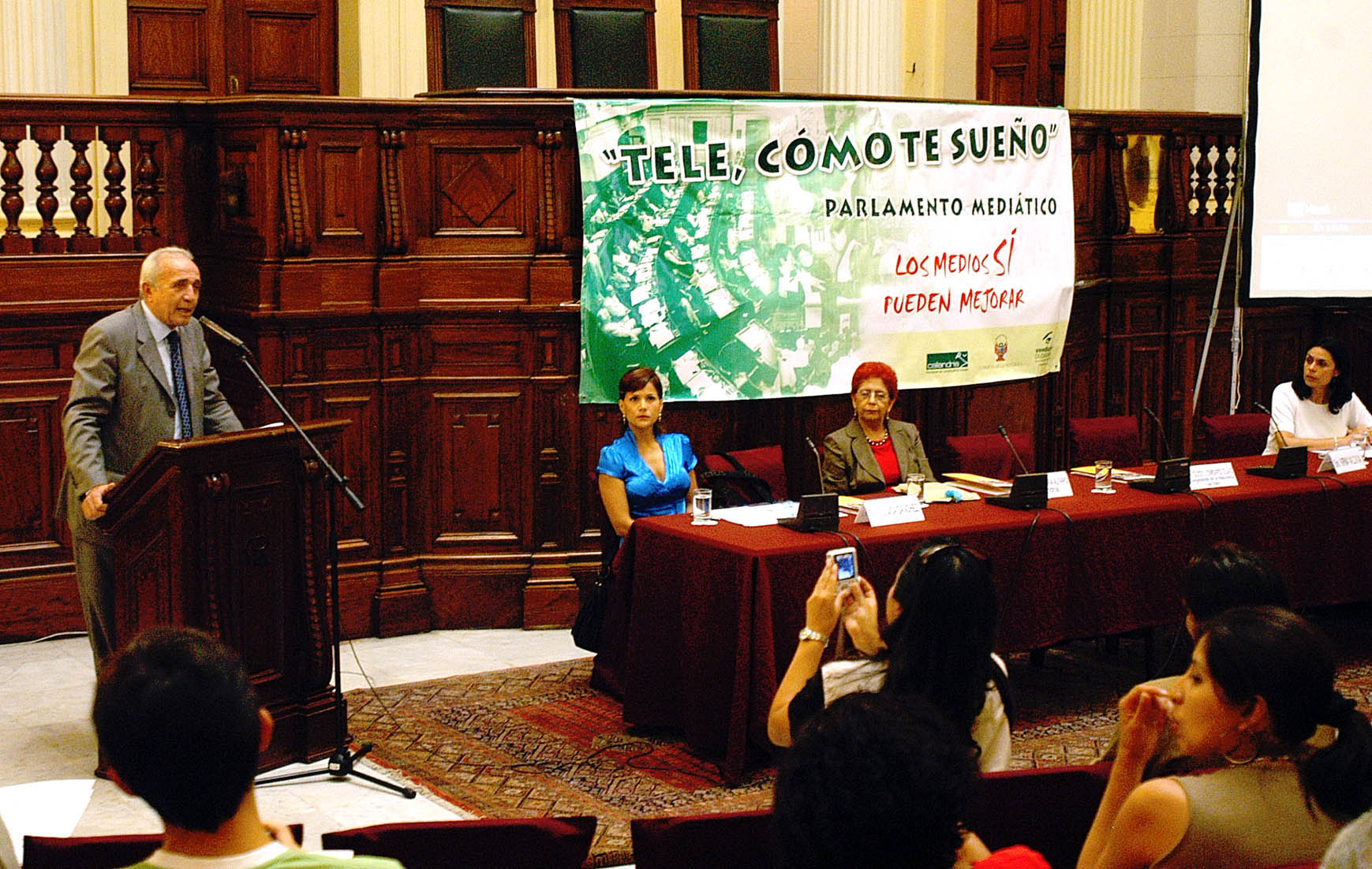 El congresista Guido lombardi Elías inauguró hoy el evento denominado Parlamento Mediático:Tele cömo te sueño, realizado en la sala Raúl Porras Barrenechea del Palacio legislativo. Publicado el día 14/01/2008 |
