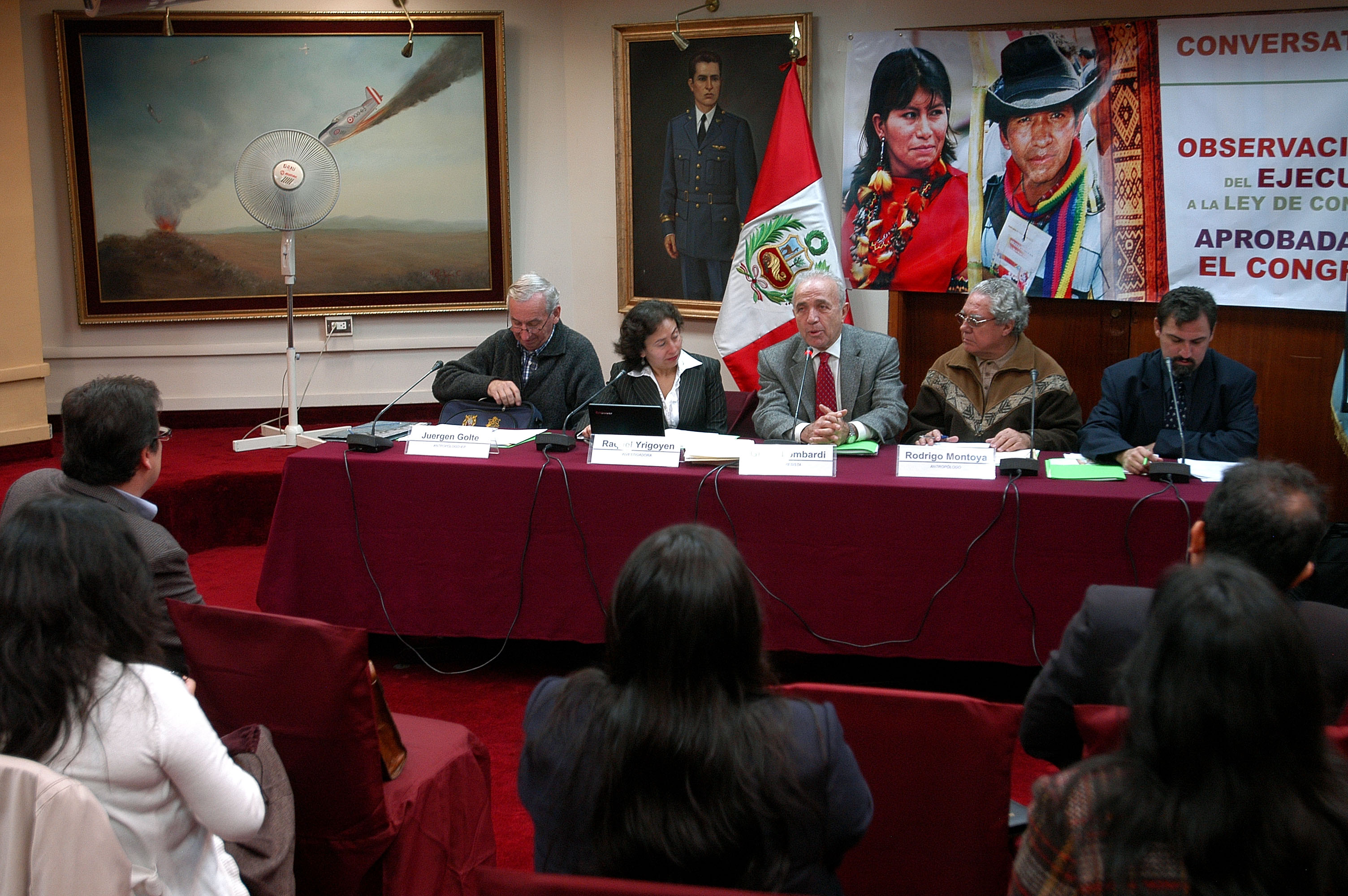 lEY DE CONSUlTA PREVIA EN DEBATE El legislador Guido lombardi Elías inauguró esta mañana una reunión de trabajo en la que el tema dominante fue la ley de consulta de los pueblos indígenas u originarios. Se trató de una reunión de la Comisión de Pueblos Andinos, Amazónicos y Afroperuanos. |