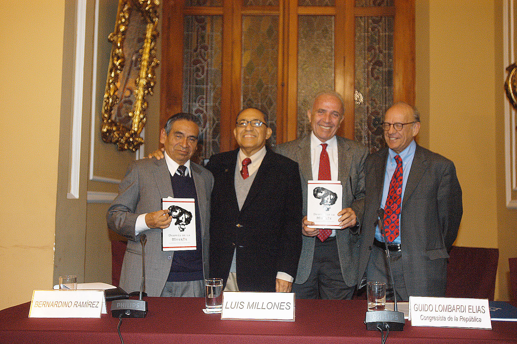 PRESENTAN lIBRO "DESPUÉS DE lA MUERTE" En ceremonia especial realizada esta noche, el congresista Güido lombardi Elías, en representación del presidente del Congreso luis Alva Castro, presidió el acto de presentación del libro "Después de la muerte", cuyo autor es luis Millones. Fue en la Sala Grau del Palacio legislativo. |