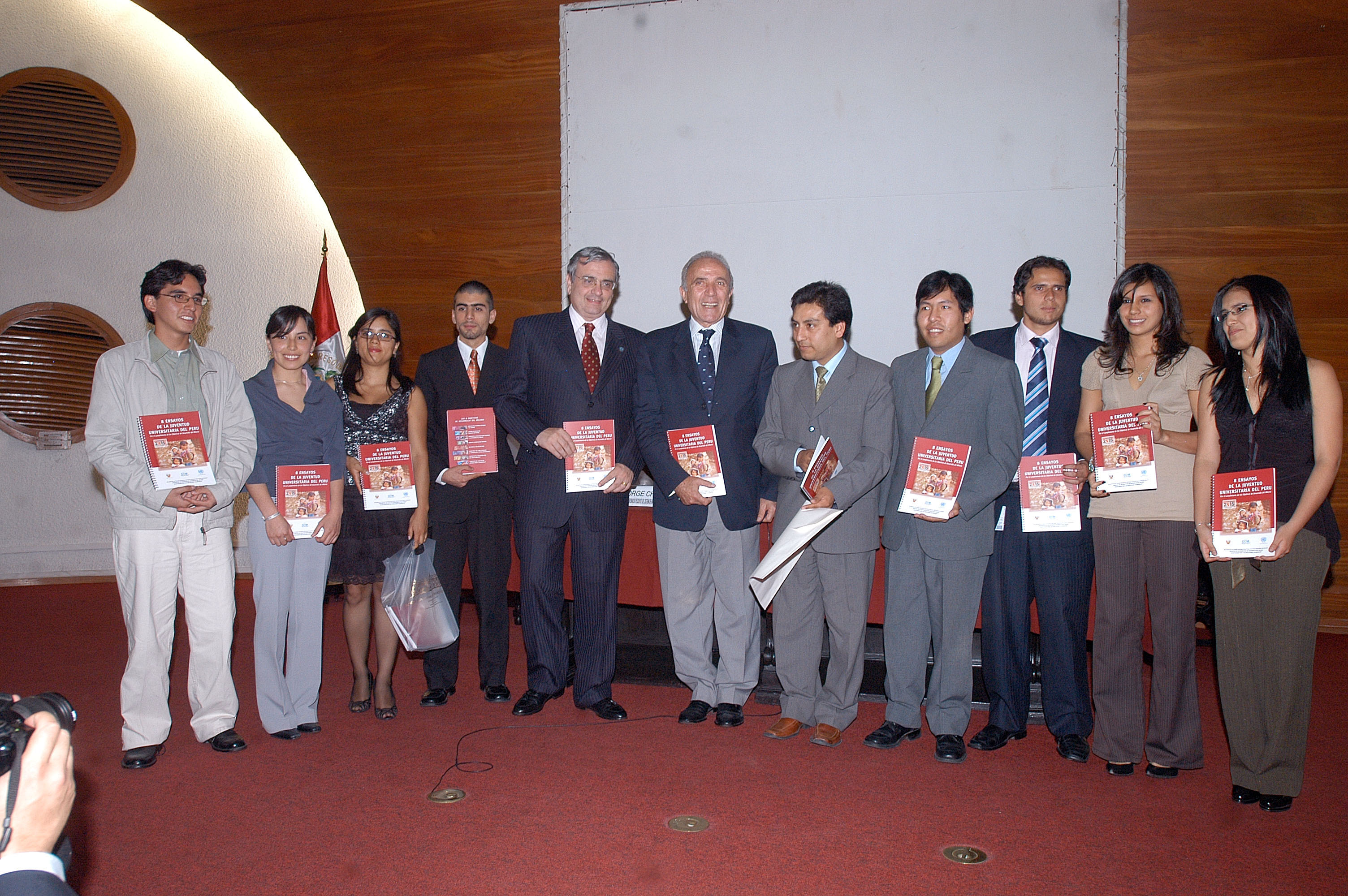 En acto especial presidido por el congresista Güido lombardi Elías, titular de la Comisión de Economía, fue presentado hoy el libro "8 Ensayos de la Juventud Universitaria del Perú, Por el cumplimiento de los Objetivos de Desarrollo del Milenio" Publicado el día 17/12/2008 |