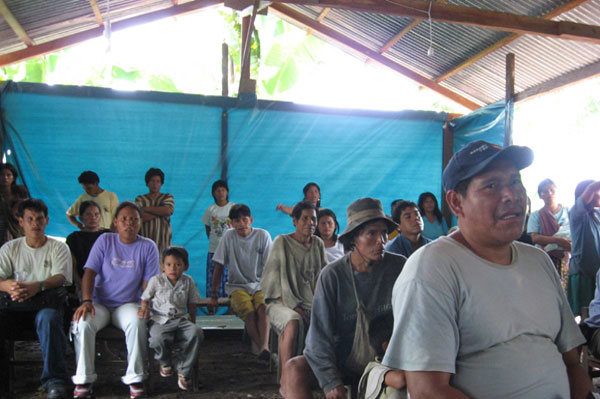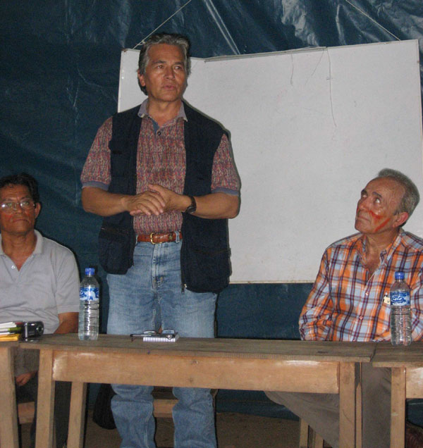 Guido lombardi, Vladimiro Huaroc Portocarrero Presidente del Gobierno Regional de Junin y luis Campos Baca Presidente del Instituto de Investigación de la Amazonía Peruana, en la audiencia con la comunidad Nativa de Tsoroja en Sastipo, Junin. la población de Tsoroja pertenece a la etnia kakinti, y carece de servicios básicos. |