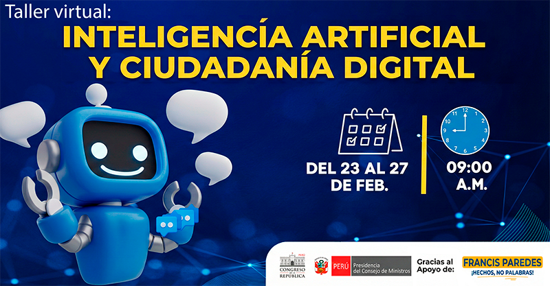 El bajo ejercicio de las libertades digitales trae como principal consecuencia el incremento de la brecha de exclusión de las personas, debido a que el Estado no se centra en satisfacer las necesidades y demandas ciudadanas, es por este motivo que el despacho de la Congresista Francis Jhasmina Paredes Castro para contribuir en mejorar el ejercicio de la ciudadanía digital propone la realización de este taller virtual denominado: “INTELIGENCIA ARTIFICIAL Y CIUDADANIA DIGITAL
