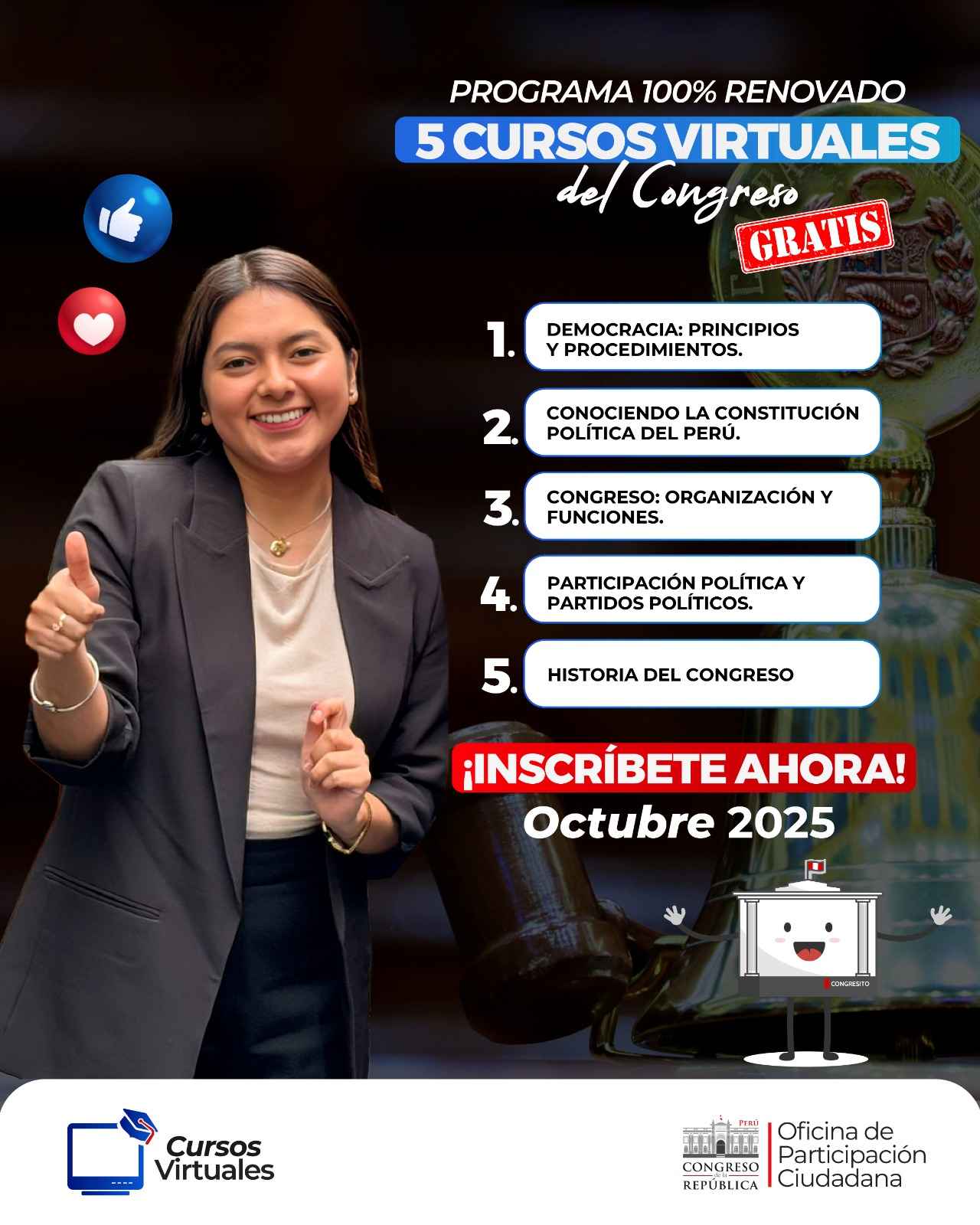 📌 Al finalizar cada curso, los participantes recibirán su constancia oficial a nombre del Congreso de la República.