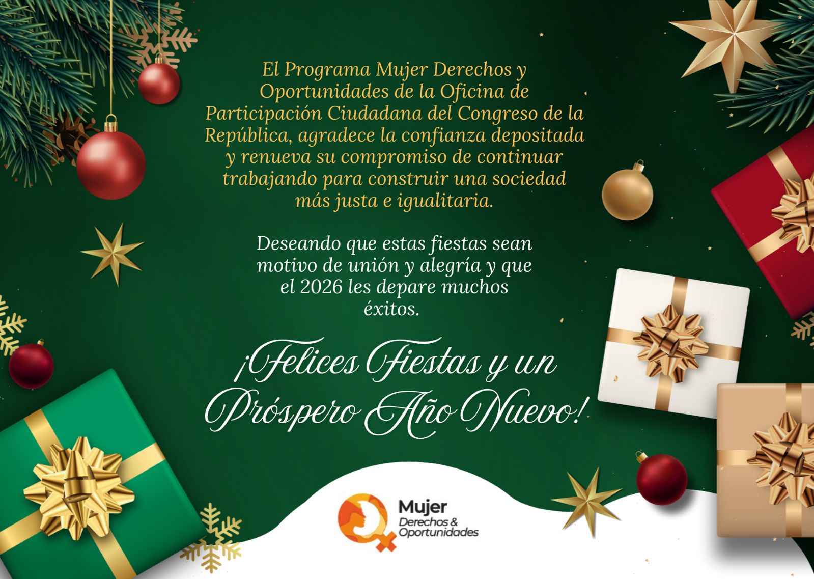 El programa “Mujer: Derechos y Oportunidades”, aprobado mediante el Acuerdo de Mesa Nº165-2017-2018/MESA-CR del 20 de marzo de 2018, es una iniciativa del Congreso de la República del Perú, desarrollada por la Oficina de Participación Ciudadana, que busca informar, sensibilizar y empoderar a la ciudadanía — especialmente a las mujeres— respecto a sus derechos fundamentales, su rol dentro de la familia y su participación en el desarrollo económico y social del país.