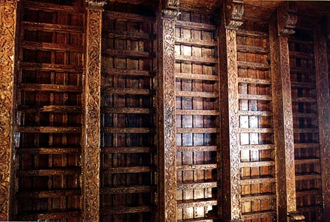 Artesonado del Techo. De la etapa colonial se exhibe un bello artesonado de estilo barroco, aunque más simple y de menos piezas que el que se encuentra en la Sala de las Audiencias, el cual data de la segunda mitad del siglo XVIII. También se puede ver una pared que conserva escrituras, referidas a frases de oraciones, realizadas por los presos; así como fragmentos de murales de estilo renacentista.