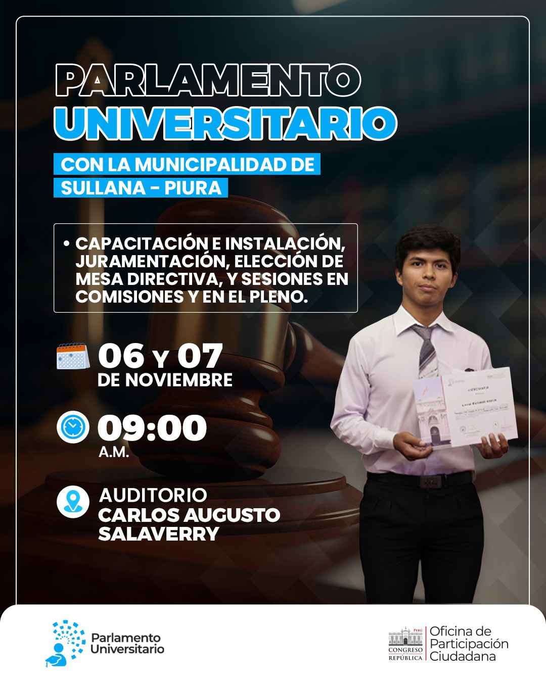 El programa Parlamento Universitario desarrollará dos plenarios en la región Piura, con el objetivo de fortalecer la formación democrática y legislativa de jóvenes y ciudadanos.